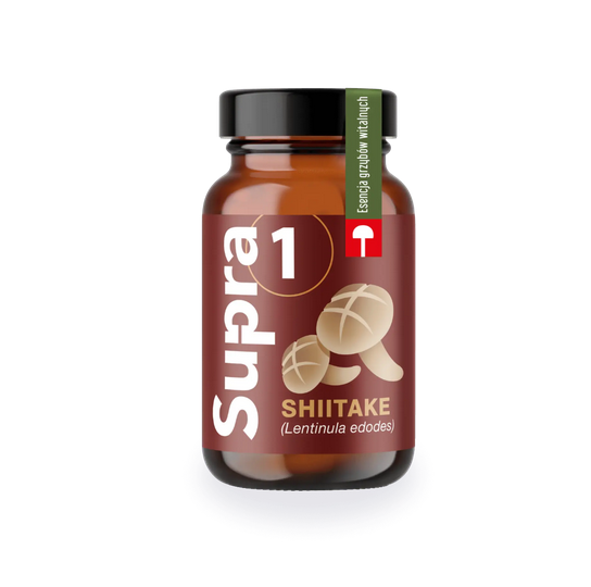 Supra1 Shiitake ist ein im Glas verschlossener Extrakt aus den Fruchtkörpern des Vitalpilzes Shiitake, ergänzt mit zartem Akazienhonig.