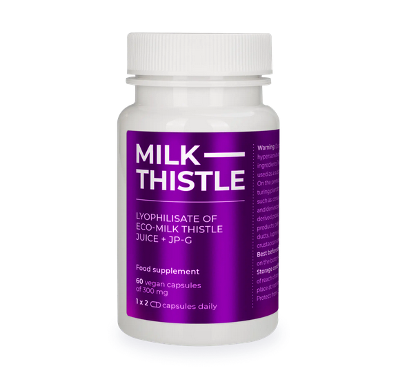 Gefriergetrocknetes getrocknetes Apfelmark vom Gold Millennium-Apfel 300 mg*, gefriergetrockneter Saft aus oberirdischen Teilen der Bio-Mariendistel (Silybum marianum L.) 180 mg* (einschließlich 2 mg Silymarin), mikronisierte Bio-Apfelfaser vom Gold Millennium-Apfel 120 mg*. *RI-Referenzaufnahme für Erwachsene nicht festgelegt